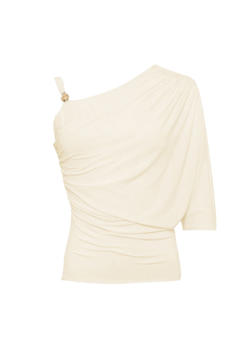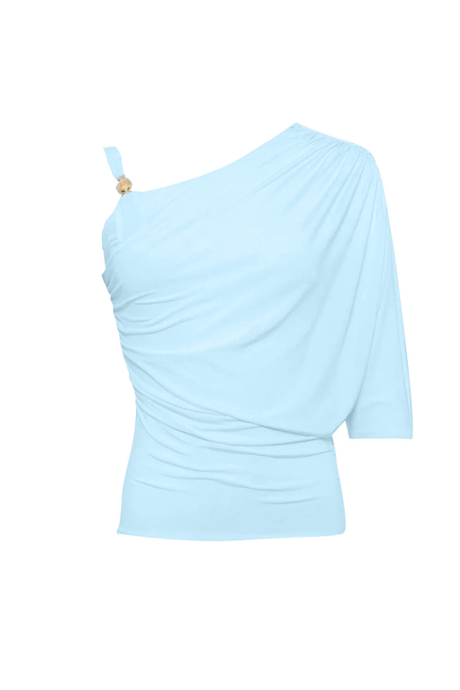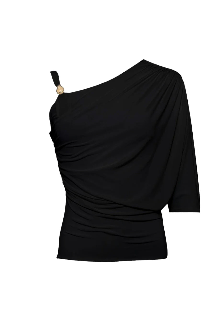 Blusa monospalla drappeggiata con taglio asimmetrico