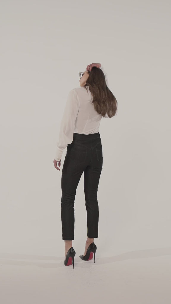 Blusa in tripla crepe a maniche lunghe arricchita da alette sulle spalle.
