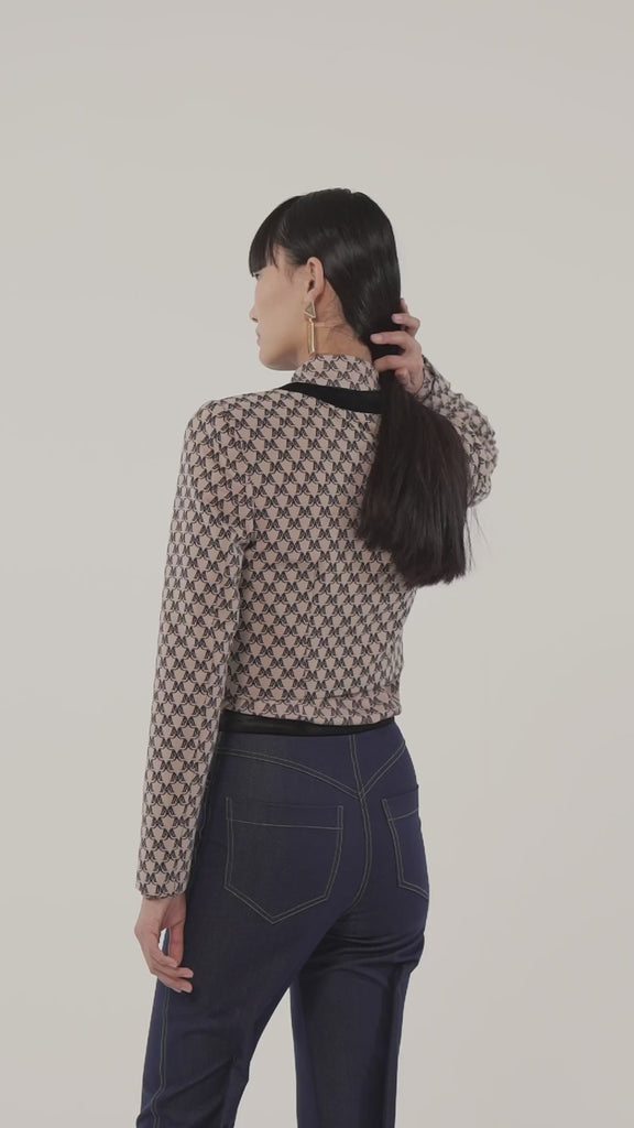 Blazer monopetto in tessuto tecnico arricchito da una stampa F.Monique nude con vestibilità slim
