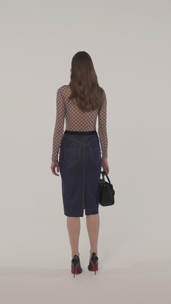 Gonna longuette realizzata in denim impreziosita da bustino
