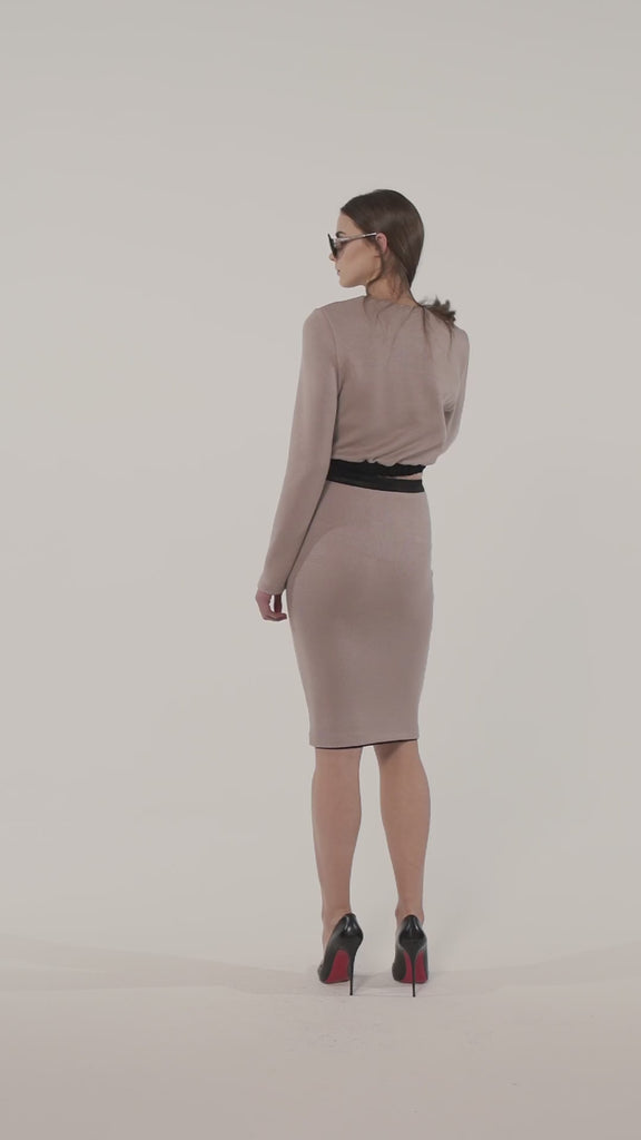 La maglia può essere cordinata a una gonna.