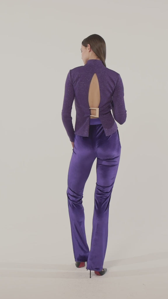 La modella è alta 180 cm. Petto 86 cm. Vita 66 cm. Fianchi 90 cm.